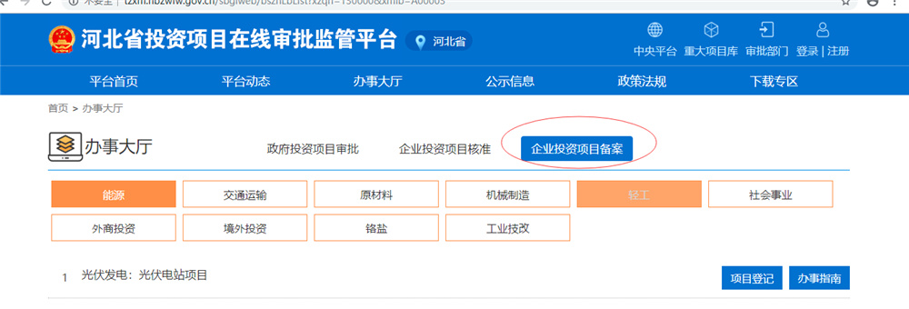 1.備案登錄“全國(guó)投資項(xiàng)目在線(xiàn)審批監(jiān)管平臺(tái)http://www.tzxm.gov.cn/