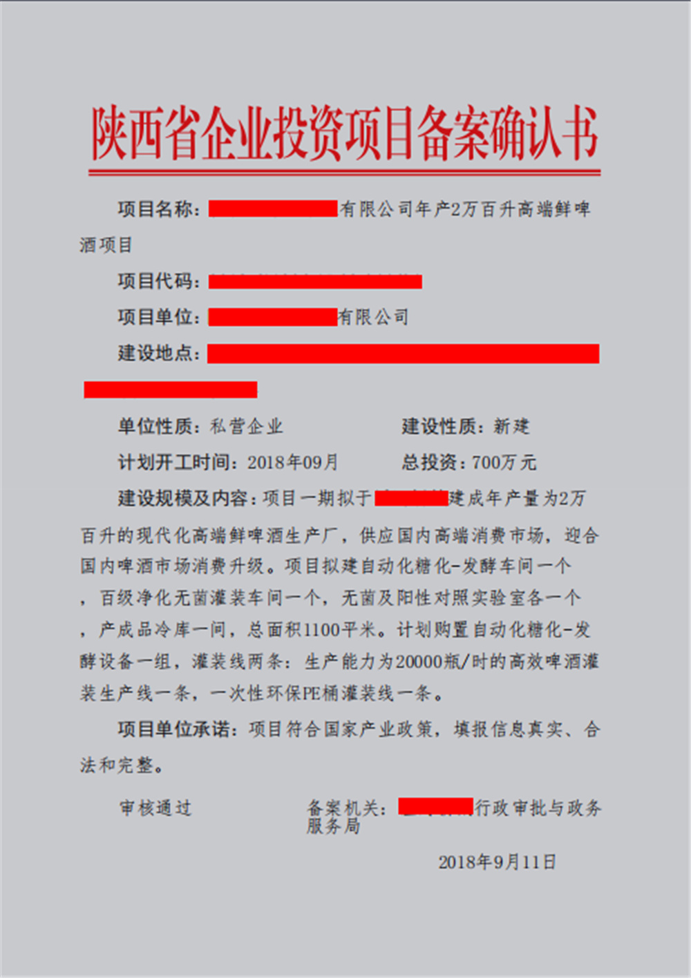 啤酒屬于“企業(yè)投資項(xiàng)目備案” “輕工”。備案下放到縣區(qū)一級(jí)。